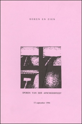 Horen en zien. Sporen van een afscheidsfeest. Met bijdragen van Renaat Declerck, Edwin Coulier, Hilda Douchy-Comeyne, Hendrik van Gorp, Anne Verbanck, Piet Thomas. Kortrijk: Eigen beheer, 1994.