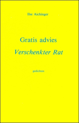 Gratis advies. Verschenkter Rat. Gedichten van Ilse Aichinger. Keuze en inleiding Rose-Marie François (vert. i.s.m. Edmond Ottevaere). Leuven: Europese Vereniging ter Bevordering van de Poëzie, 1987.