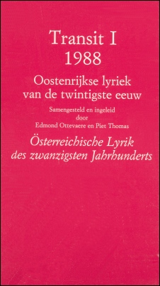 Transit I 1988. Oostenrijkse lyriek van de twintigste eeuw / Österreichische Lyrik des zwanzigsten Jahrhunderts (ed. i.s.m. Edmond Ottevaere). Gent: Poëziecentrum, 1989.