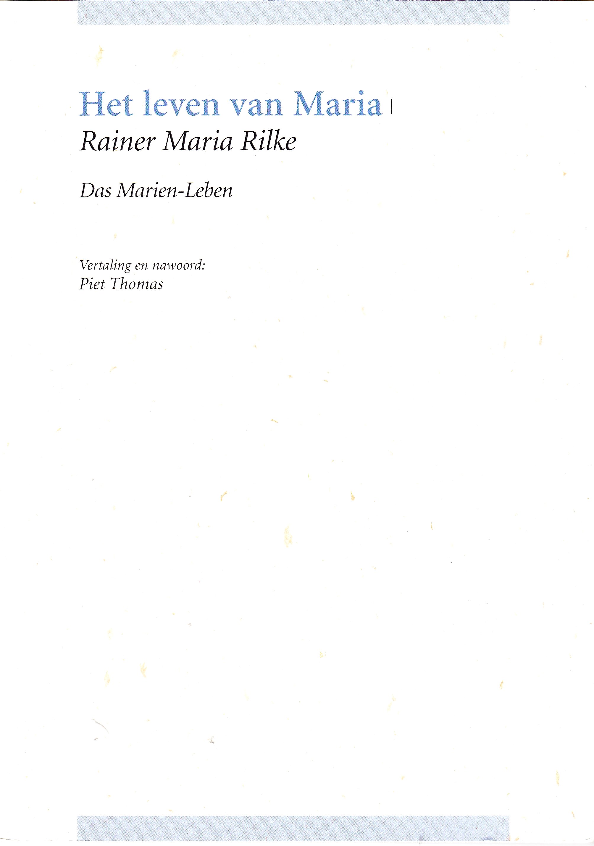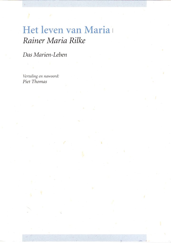 Het leven van Maria / Das Marien-Leben door Rainer Maria Rilke. Vertaling en nawoord: Piet Thomas. Leuven: Uitgeverij P, 2019. 32 p.